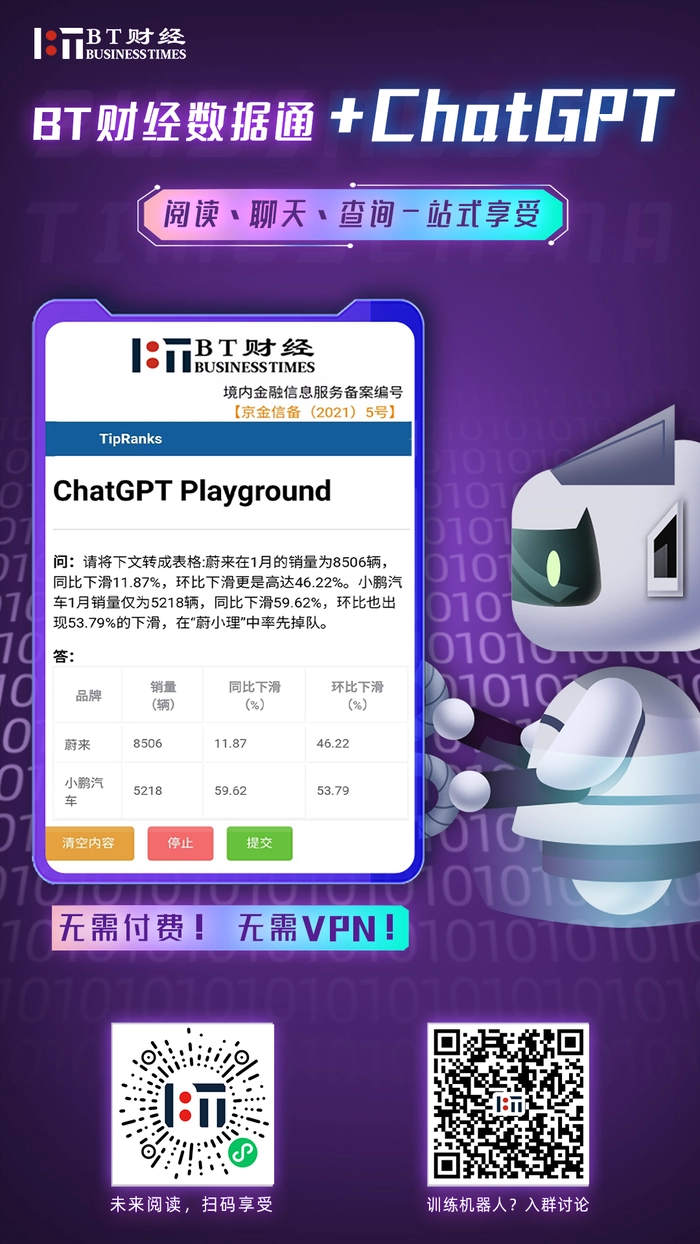 BT财经作为国内首家同时接入ChatGPT和文心一言双数据模型的金融信息服务平台,未来将打造基于人工智能的革命性金融产品和数据产品,也将引领AI赋能金融科技的浪潮,加快金融信息行业的转型步伐!