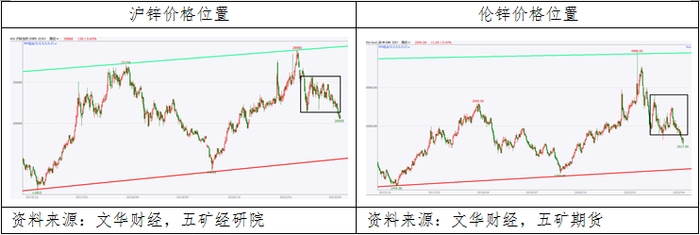 四、锌价处在长期价格区间中部偏低位置