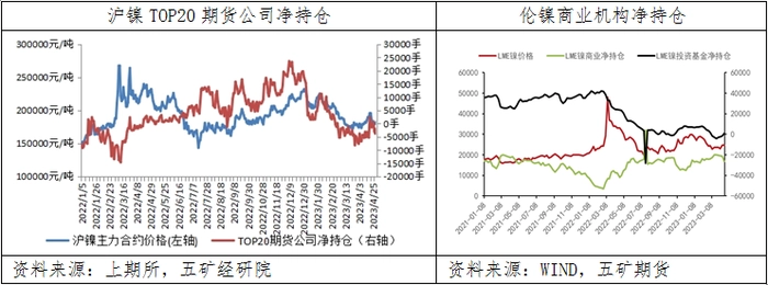 4月28日,沪镍持仓量TOP20期货公司净空头敞口由7629手收窄至1949手;伦镍商业机构净持空头头寸26551手,较上月同期空头敞口扩大6510手,投资基金转为净持多头头寸981手,较上月同期空头敞口收窄5003手。