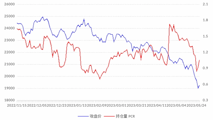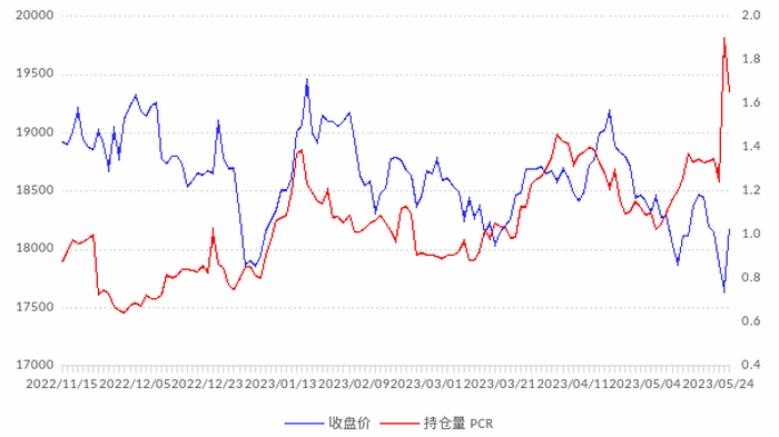 5月卖出看跌期权持仓量明显增加,持仓量PCR大幅回升,市场看跌情绪缓解。