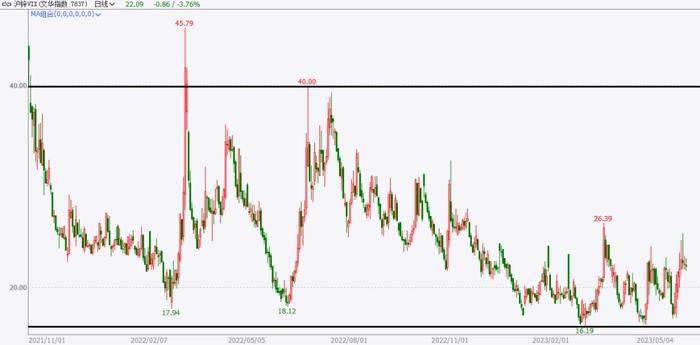 沪锌价格趋势性下跌推动期权隐含波动率上升。5月,沪锌价格破位持续下跌。伴随趋势性下跌行情,沪锌期权隐含波动率快速回升并回归中位水平,5月26日收于22.33%。
