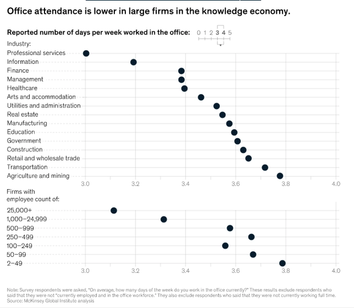 多种办公方式将继续存在。因此,办公室出勤率稳定在比疫情前低30%的水平。
