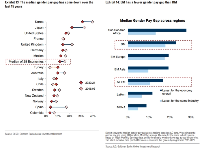 过去15年来,高盛看到了许多性别平等方面的进步,特别是在教育和劳动力参与方面,但也看到了持续存在的差距。