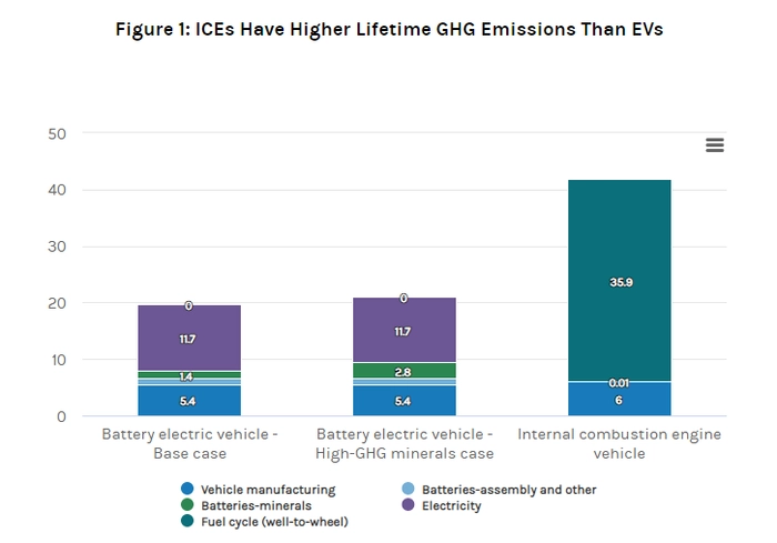 Jonas表示,“电动汽车在使用寿命期间的温室气体排放量明显低于内燃机汽车。”“电动汽车在其使用寿命内的排放,远远抵消了制造电动汽车(包括电动汽车上电池)所带来的更高的能源强度。”