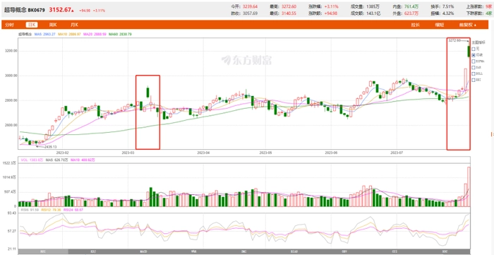 8月1日美股开盘后,美国超导( NASDAQ:AMSC )股价从10美元跳涨到17美元上方,当天收涨60%。A股同步沸腾,东方财富“超导概念”8月1日大涨5.66%,涨势延续到次日,永鼎股份( 600105.SH )、百利电气( 600468.SH )、法尔胜( 000890.SZ )、中孚实业( 600595.SH )等多个概念股连日攀升到涨停。