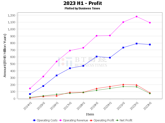 According to financial report data, the company's operating income in the first half of 2023 was 1.093 billion yuan, a decrease from 1.181 billion yuan in the same period last year. Operating profit was 84.2 million yuan, a sharp decline from 197 million yuan in the same period last year. Net profit was 73 million yuan, a year-on-year decrease, with 169 million yuan in the same period last year. In addition, the net profit attributable to the listed company's shareholders after excluding the share-based payment expenses of the equity incentive plan was 74,276,952.35 yuan, a year-on-year decrease of 52.40%.