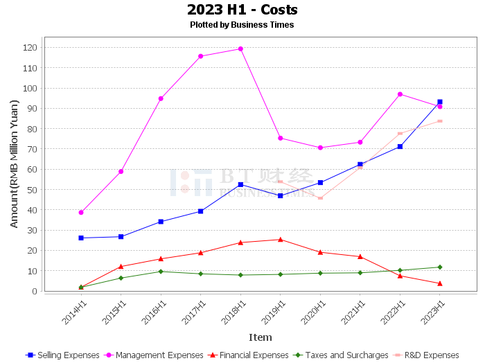 In terms of costs, the company's operating costs were 778 million yuan, a decrease from 792 million yuan in the same period last year. Sales expenses increased by 31.03% year-on-year, mainly due to the company's increased marketing efforts and increased marketing investment. Financial expenses decreased by 50.29% year-on-year, mainly due to changes in the company's financing structure. Income tax expenses decreased by 64.97% year-on-year, mainly due to the company's reduced total profit.