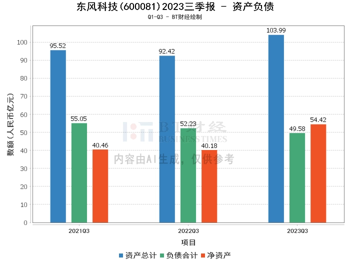 在资产负债方面,东风科技2023年三季度的总资产为103.99亿元,相比上年度末的89.16亿元增长了16.64%。负债总额为49.58亿元,相比上年度末的48.1亿元略有增加。公司的净资产为54.42亿元,较上年度末的41.06亿元增长了32.37%,资产负债率为47.67%,较上年度末的53.95%有所下降。