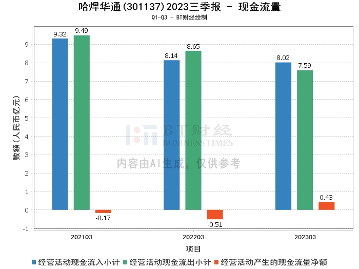 总体来看,哈焊华通2023年三季度在总资产、净利润等关键财务指标上均实现了较大幅度的增长,显示出公司的经营状况良好,发展势头强劲。同时,公司的现金流量状况也有所改善,经营活动产生的现金流量净额实现了由负转正的变化,这对于公司的日常经营和未来发展都具有积极的意义。