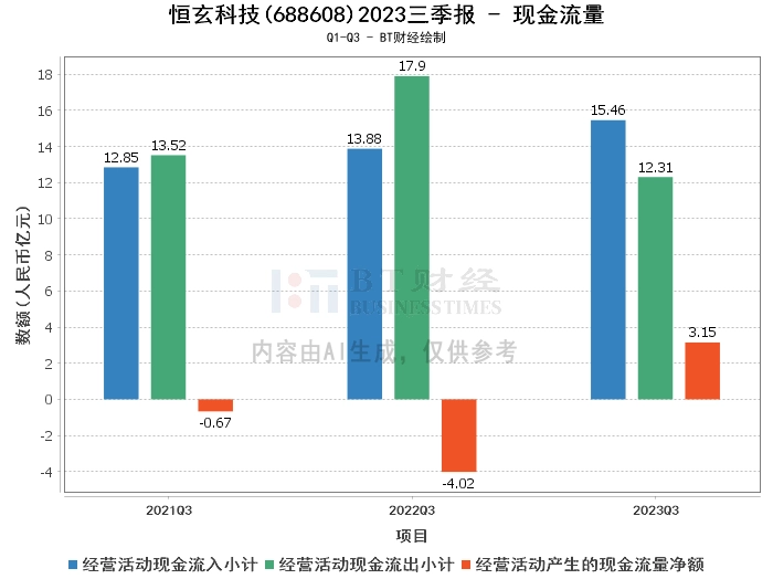 在现金流量方面,恒玄科技2023年前三季度的经营活动产生的现金流量净额为3.15亿元,相比上年同期的-4.02亿元有明显改善。经营活动现金流入小计为15.46亿元,相比上年同期的13.88亿元有所增长。经营活动现金流出小计为12.31亿元,相比上年同期的17.9亿元有所减少。这表明公司的现金流量状况有明显改善,经营活动现金流量净额由负转正。