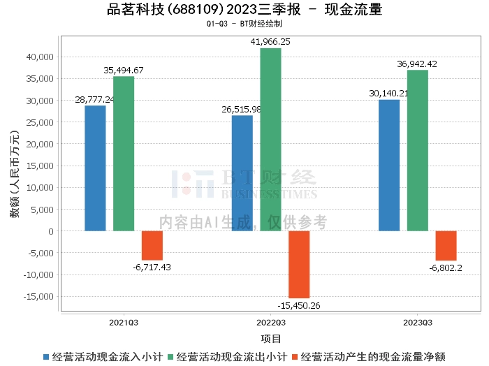 在现金流量方面,品茗科技2023年三季度经营活动产生的现金流入为3.01亿元,相比上年同期的2.65亿元,现金流入有所增加。经营活动产生的现金流出为3.69亿元,相比上年同期的4.2亿元,现金流出有所减少。