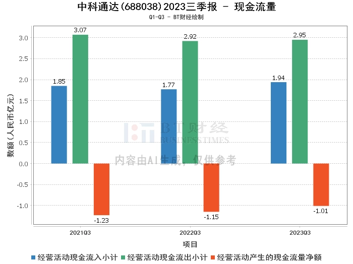 在现金流量方面,公司2023年三季度的经营活动现金流入为1.94亿元,较上年同期的1.77亿元有所增加。经营活动现金流出为2.95亿元,较上年同期的2.92亿元略有增长。经营活动产生的现金流量净额为-1.01亿元。