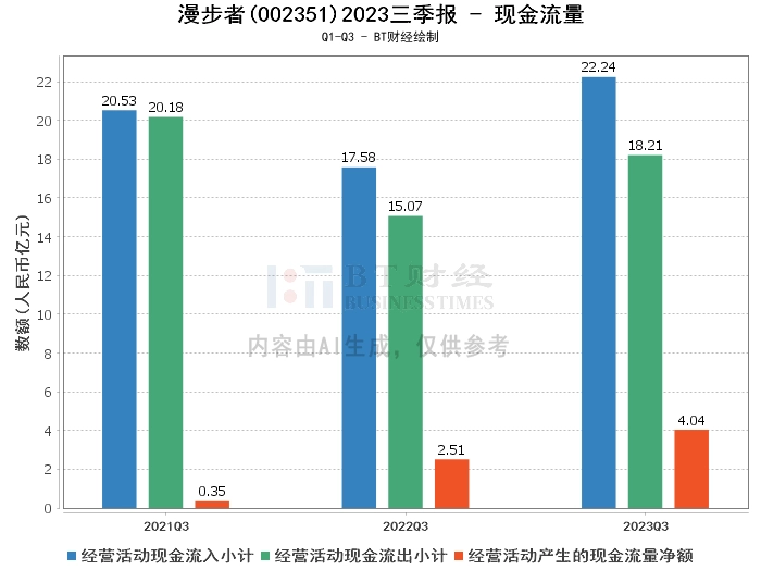 在现金流量方面,公司2023年三季度经营活动产生的现金流量净额为4.04亿元,同比增长60.63%,经营活动现金流入小计为22.24亿元,经营活动现金流出小计为18.21亿元。这表明公司的经营活动产生的现金流量能力较强。