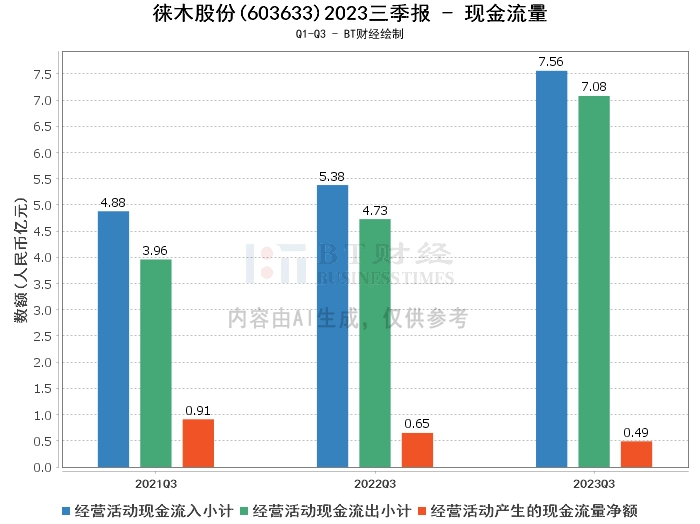 从现金流量方面来看,公司2023年三季度的经营活动产生的现金流量净额为4860.66万元,较上年同期的6487.99万元有所下降。经营活动现金流入小计为7.56亿元,较上年同期的5.38亿元有所增长。经营活动现金流出小计为7.08亿元,较上年同期的4.73亿元有所增长。