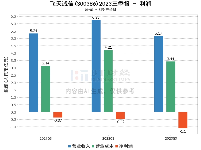 在利润方面,2023年三季度,飞天诚信的营业收入为5.17亿元,相比上年同期的6.25亿元减少了17.25%。营业成本为3.44亿元,相比上年同期的4.21亿元减少了18.29%。毛利率为33.53%,相比上年同期的32.59%有所提升。归属于上市公司股东的净利润为-1.09亿元,相比上年同期的-4706.3万元,亏损增加了132.65%。这些变化主要是由于主营收入下降及期间费用上升所致。