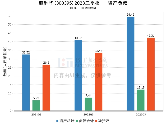 综上所述,菲利华公司在2023年三季度的经营状况总体良好,资产总计、营业收入、净利润等主要财务指标均实现了较大幅度的增长。然而,毛利率和净利率的下降以及资产负债率的上升,表明公司在盈利能力和负债管理方面存在一定的压力。