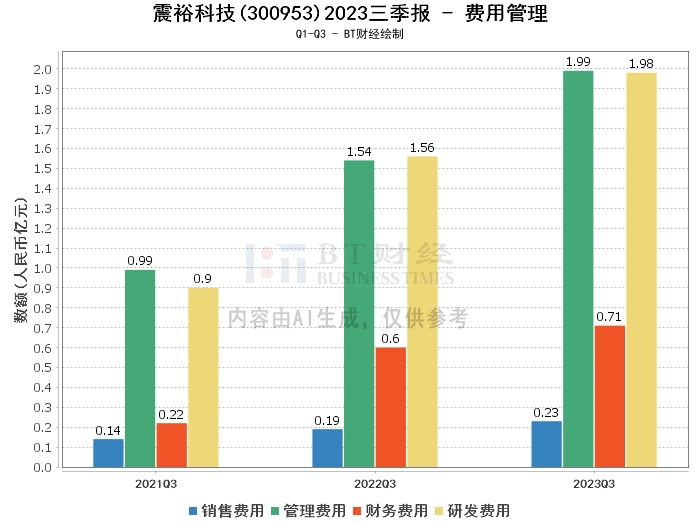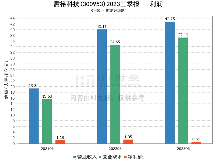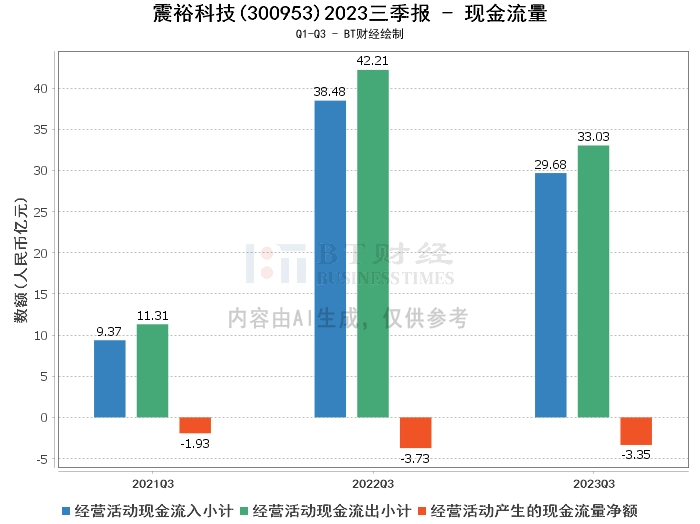 综上所述,震裕科技在2023年三季度的经营状况表现出一定的复杂性。尽管公司的总资产和营业收入均实现了增长,但净利润的大幅下滑以及现金流量净额的负增长表明公司的盈利能力和现金流状况存在一定的压力。然而,值得注意的是,公司在新能源汽车市场的业务发展势头良好,这可能会成为公司未来的增长点。