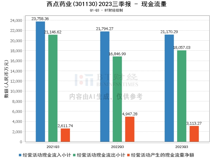 综上所述,西点药业在2023年三季度的经营状况总体稳定,净利润增长明显,资产负债率下降,显示出公司的盈利能力和财务结构都有所改善。但是,公司的现金流量净额降幅较大,这可能会对公司的日常运营和发展产生一定影响。