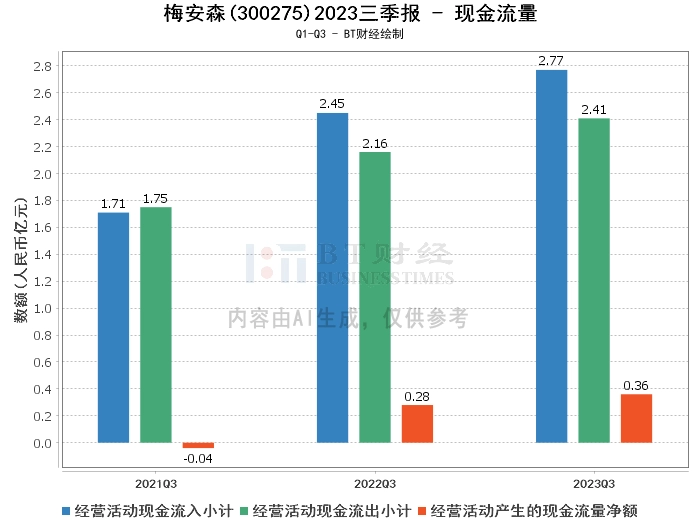 综上所述,梅安森2023年三季度的经营状况整体良好,总资产、营业收入和净利润均实现了较大幅度的增长,现金流量状况良好,财务结构有所优化。这些都表明公司的经营管理能力强,盈利能力和偿债能力较强。