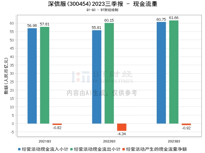 在现金流量方面,深信服的经营活动产生的现金流入从上年同期的55.81亿元增加到年初至本报告期末的60.75亿元。经营活动产生的现金流出从上年同期的60.15亿元增加到年初至本报告期末的61.66亿元。
