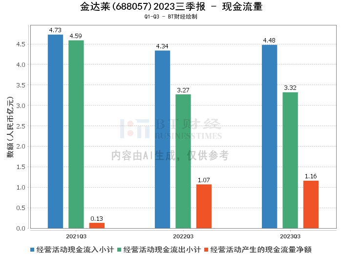 在现金流量方面,金达莱公司的经营活动产生的现金流量净额在年初至本报告期末为1.16亿元,相比上年同期的1.07亿元有所增加。这主要是由于报告期回款较上年增加所致。