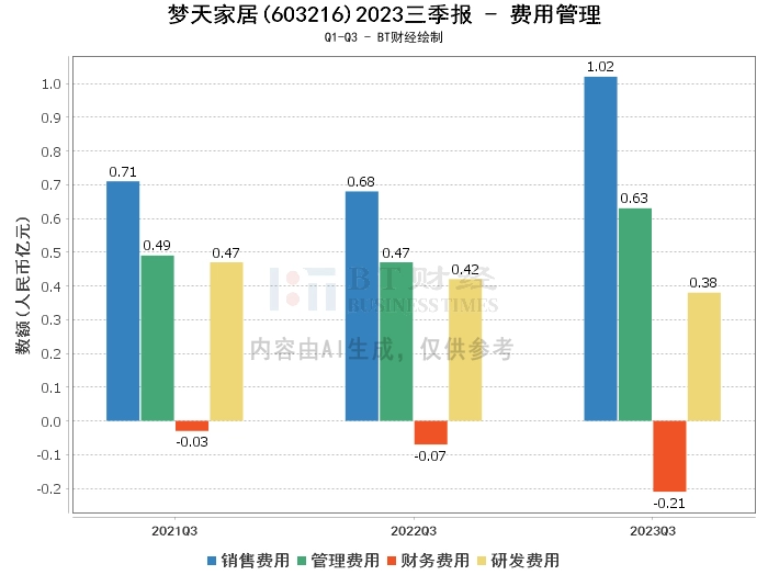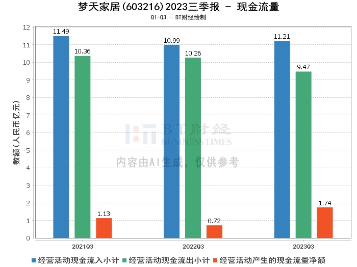 综上所述,梦天家居2023年三季度的经营状况出现了一些波动。公司的营业收入和净利润均有所下降,但经营活动产生的现金流量净额大幅增加。这些变化主要是由于营业收入略有下降、新媒体广告投放、差旅费及股份支付增加所致。