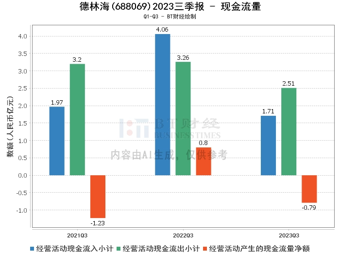 综上所述,2023年三季度,德林海的经营状况面临一些压力。公司的营业收入、营业利润、净利润均有所下降,现金流量也出现了一定的减少。这主要是由于宏观环境的影响,公司部分湖库治理业务的项目推进工作有所推迟或延缓,同时部分在手订单尚未确认收入。此外,市场宏观环境变化的影响,公司部分业务开展地区的地方财政面临短期资金压力,导致部分地区的回款速度不及预期,由于应收账款(含合同资产及其他应收款)账龄迁徙,本期计提的坏账准备5,368.92万元,较上年同期增加1,304.68万元。