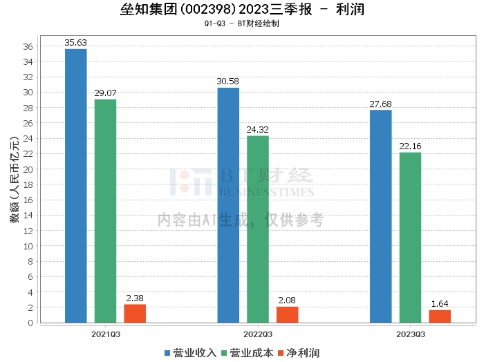 在利润方面,年初至本报告期末的营业收入为27.68亿元,较上年同期的30.58亿元有所下滑。营业利润为1.75亿元,较上年同期的2.37亿元有所减少。营业成本为22.16亿元,较上年同期的24.32亿元有所减少。净利润为1.64亿元,较上年同期的2.08亿元有所下滑。