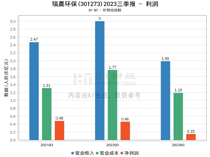 【BT财报瞬析】瑞晨环保2023三季报:净利润下滑,现金流压力显现