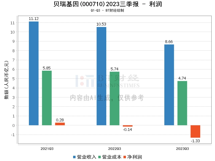 【BT财报瞬析】贝瑞基因2023三季报:营收和净利润双双下滑,现金流量净额实现正转负