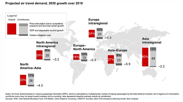 贝恩仍然预计,亚洲区域内的需求将强劲增长,2019年至2030年将增长60%。越南是该地区经济前景最强劲的国家之一,这得益于该国的国内生产总值(GDP)预测以及近期旅游业增长预期的优异表现。