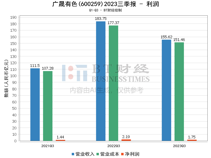 在利润方面,广晟有色的营业收入从上年同期的183.75亿元下降至155.62亿元,减少了15.30%。营业利润从上年同期的2.89亿元降至1.77亿元,净利润也从2.19亿元降至1.75亿元。毛利率和净利率分别从上年同期的3.47%和1.19%降至2.68%和1.12%,显示出公司盈利能力有所下降。这些变化可能与市场需求、原材料成本以及行业竞争等因素有关。