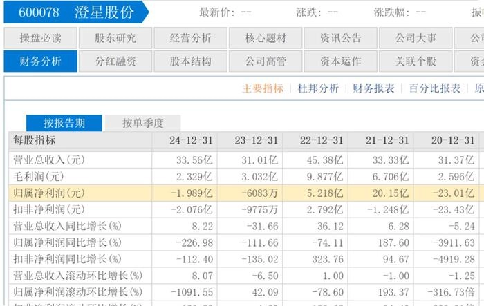 澄星股份在李星星入主之后,业绩并未出现起色,2023年、2024年,公司连续两年出现亏损,净亏损分别为6083万元和1.989亿元,尤其在2023年营收31.01亿元,同比下滑31.66%。直到今年上半年才扭亏为盈,净利润1856万元。